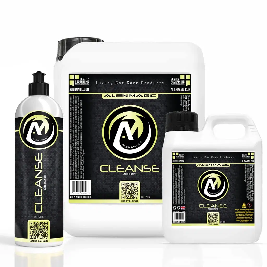 Cleanse is a game-changing acidic shampoo that unleashes next-level cleaning power on both coated and uncoated surfaces! Specifically engineered to “unclog” and revive hydrophobic properties on ceramic-coated, waxed or sealed paintwork.